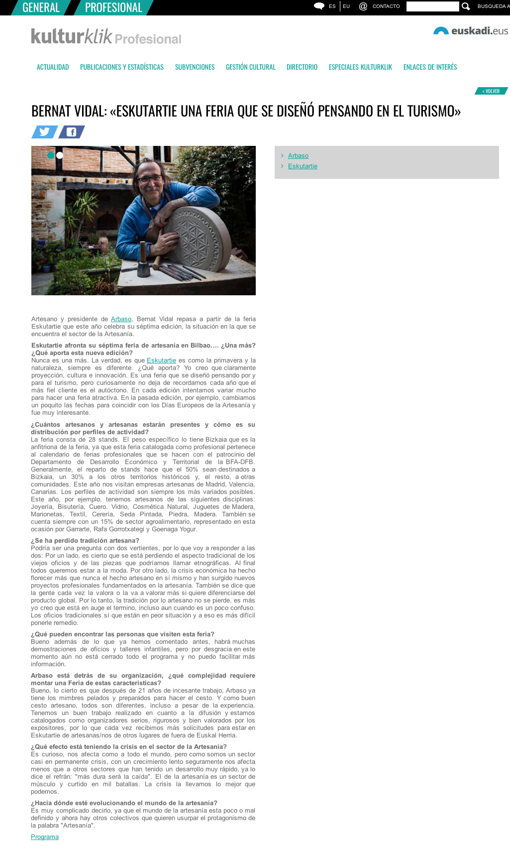 BERNAT VIDAL: «ESKUTARTIE UNA FERIA QUE SE DISEÑÓ PENSANDO EN EL TURISMO»