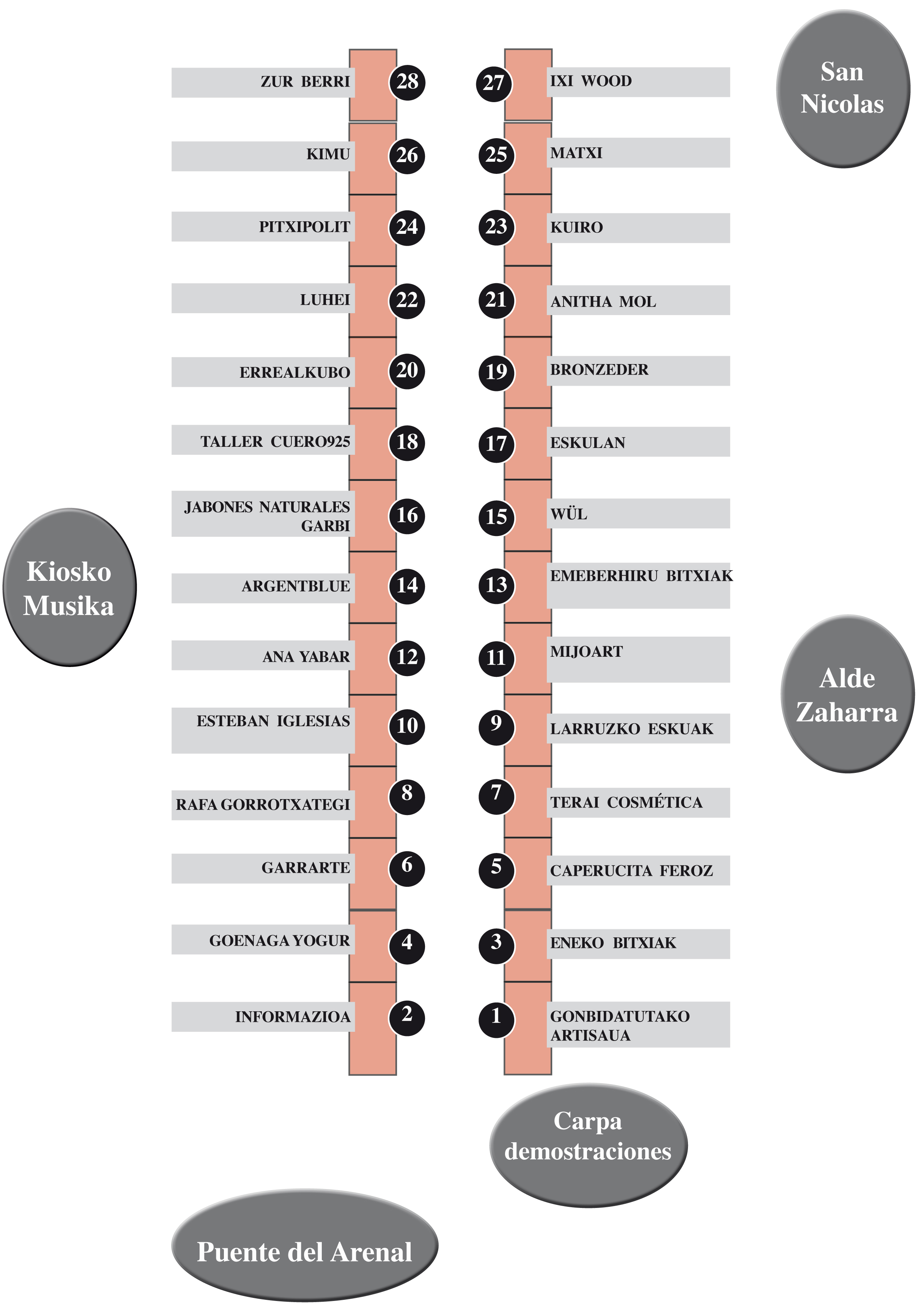 Plano de distribución de los participantes dentro del espacio ferial.