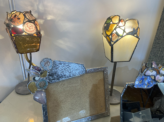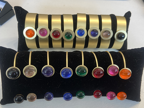 con una bisutería muy peculiar realizada en vidrio.