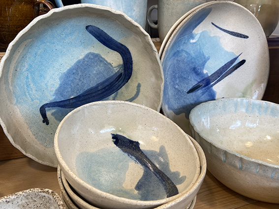 Sus piezas estan hechas a mano y a torno con gres refractario cocido a 1260° C.