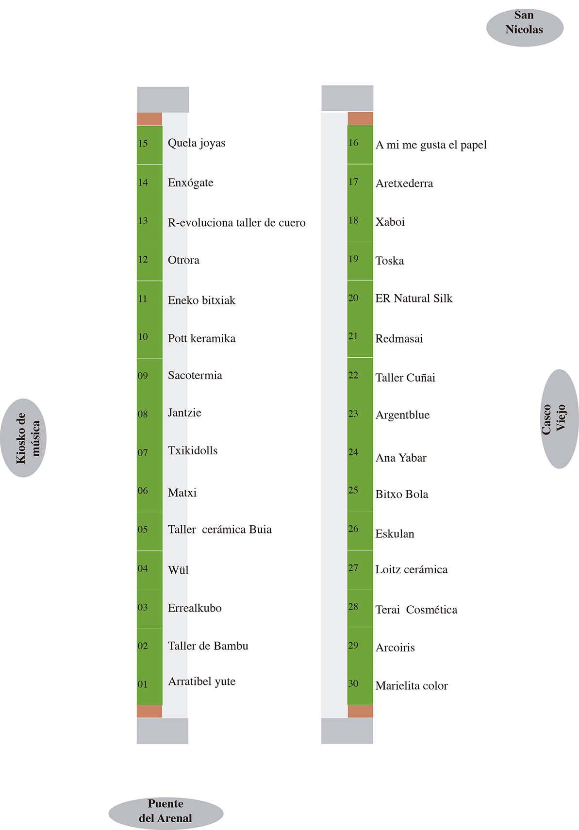 Plano de distribución de los participantes dentro del espacio ferial.
