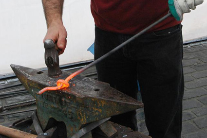 El artesano Cesar Alcoz autor de las flores motivo del cartel de esta edición nos deleitó con una demostración de forja artística y aunque el día estuvo triste y poco primaveral, el calor de la fragua y de la gente caldearon el primer día de la feria.
