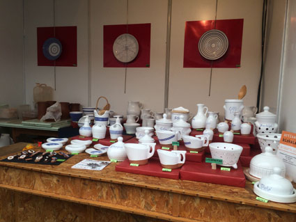 Mª Jesús llega de Vigo, Pontevedra, con unos complementos cerámicos que darán que hablar entre los visitantes de eskutartie. Originales colgantes y complementos de cerámica que prometen crear estilo. |