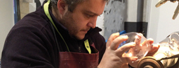 Demostración de vidrio tallado a cargo del artesano Isaac Perez, del taller Decristalia de Ablitas (Nafarroa). |
