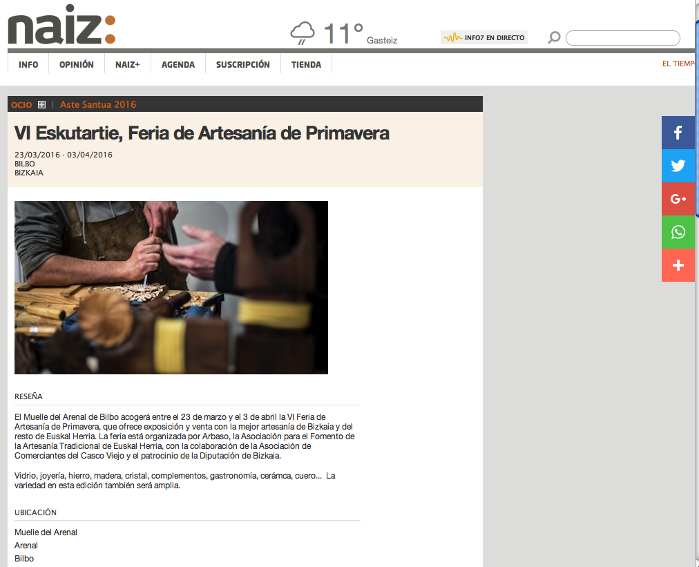 Spot publicado en colaboración con Hamaika televista publicitando la participación de Arbaso en los Días europeos de la artesanía que se celebran los próximos 1-2-3 de abril.