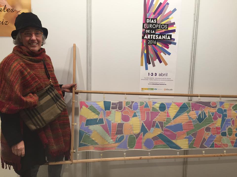 Y una actividad ya habitual en nuestras ferias es la de pintar un pañuelo de seda entre todos los que lo deseen, y aquí tenemos a Aziza Puch de Meano (Nafarroa) haciéndonos sentir a todos un poquito artesanos y artistas, este año el tema es como no podía ser de otra forma , Los días europeros de la artesanía.