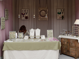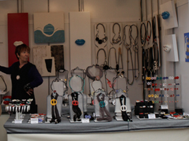 Mª Jesús llega de Vigo (Pontevedra), con unos complementos cerámicos que darán que hablar entre los visitantes de eskutartie. Originales colgantes y complementos de cerámica que prometen crear estilo.