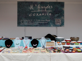 Seguimos con los alabeses, Marian Corres desde Vitoria-Gasteiz nos presenta una muy selecta colección de piezas de cerámica, y el destello de colores tan apropiado en estas fechas de su stand ilumina la feria.
