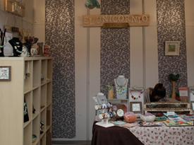 Exposición de productos tejidos, desde los tradicionales chales a objetos, muñecos, bolsos, letras ….