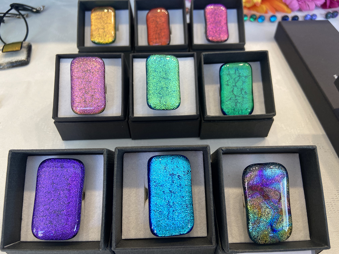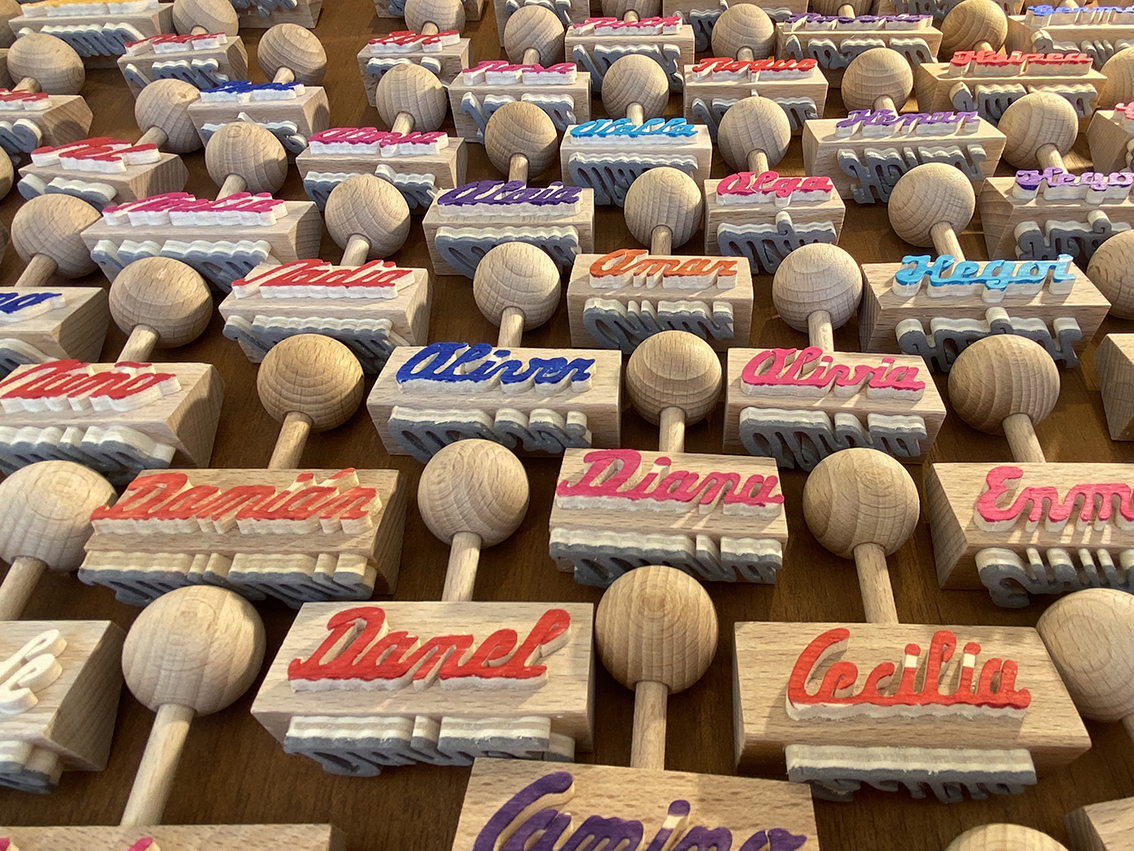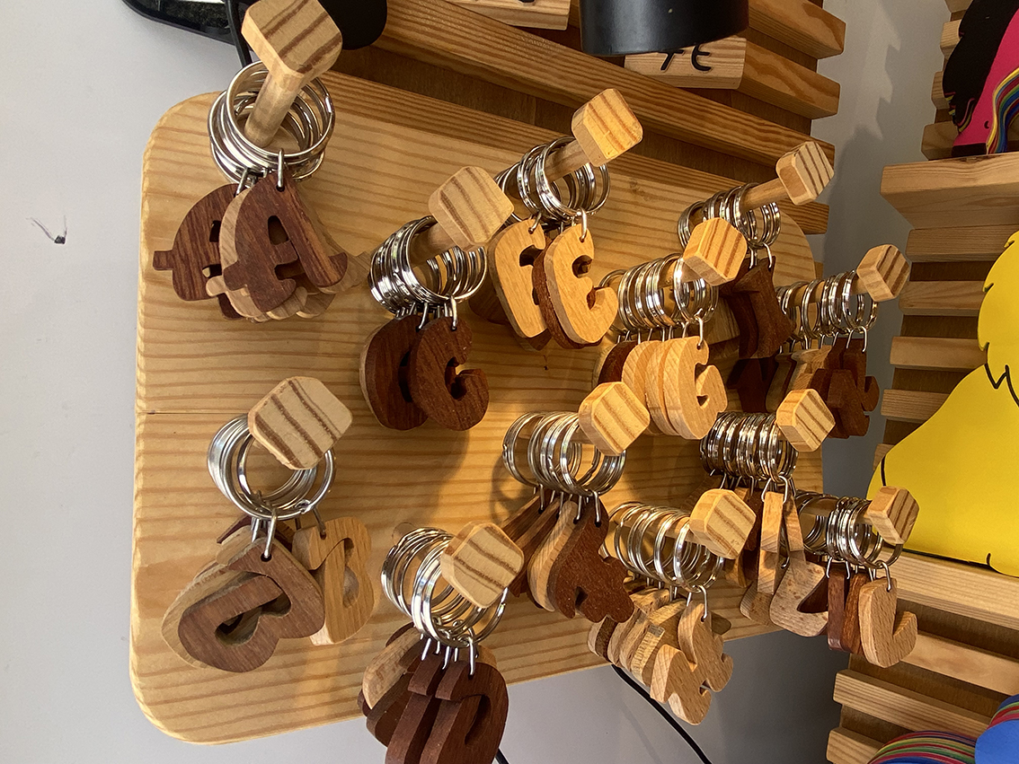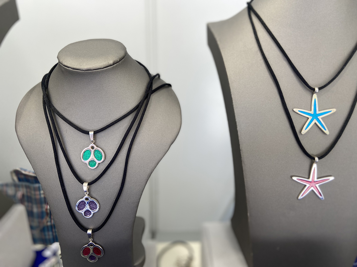 Material noble horiekin, idazkunak, zigiluak, giltzatakoak, mugikorrak, esekitokiak eta abar egiten dituzte, kolore deigarri eta dibertigarriekin,