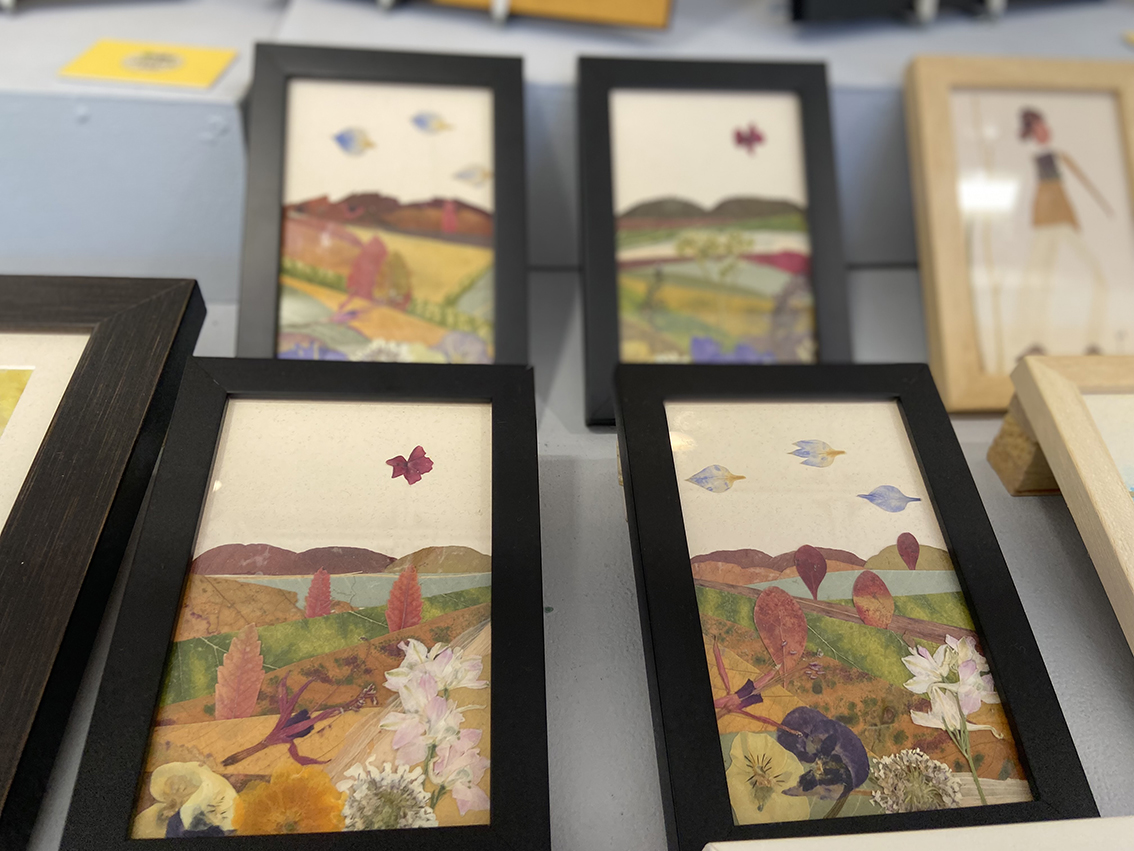 Konposizioak azkar markoztatzen dira, collageak ez hondatzeko. Landare bakoitza eskuz kolatzen da pintzel batez lagunduta, eta artisau-eskuaren kalitateak bihurtzen du koadro bakoitza pieza bakar.