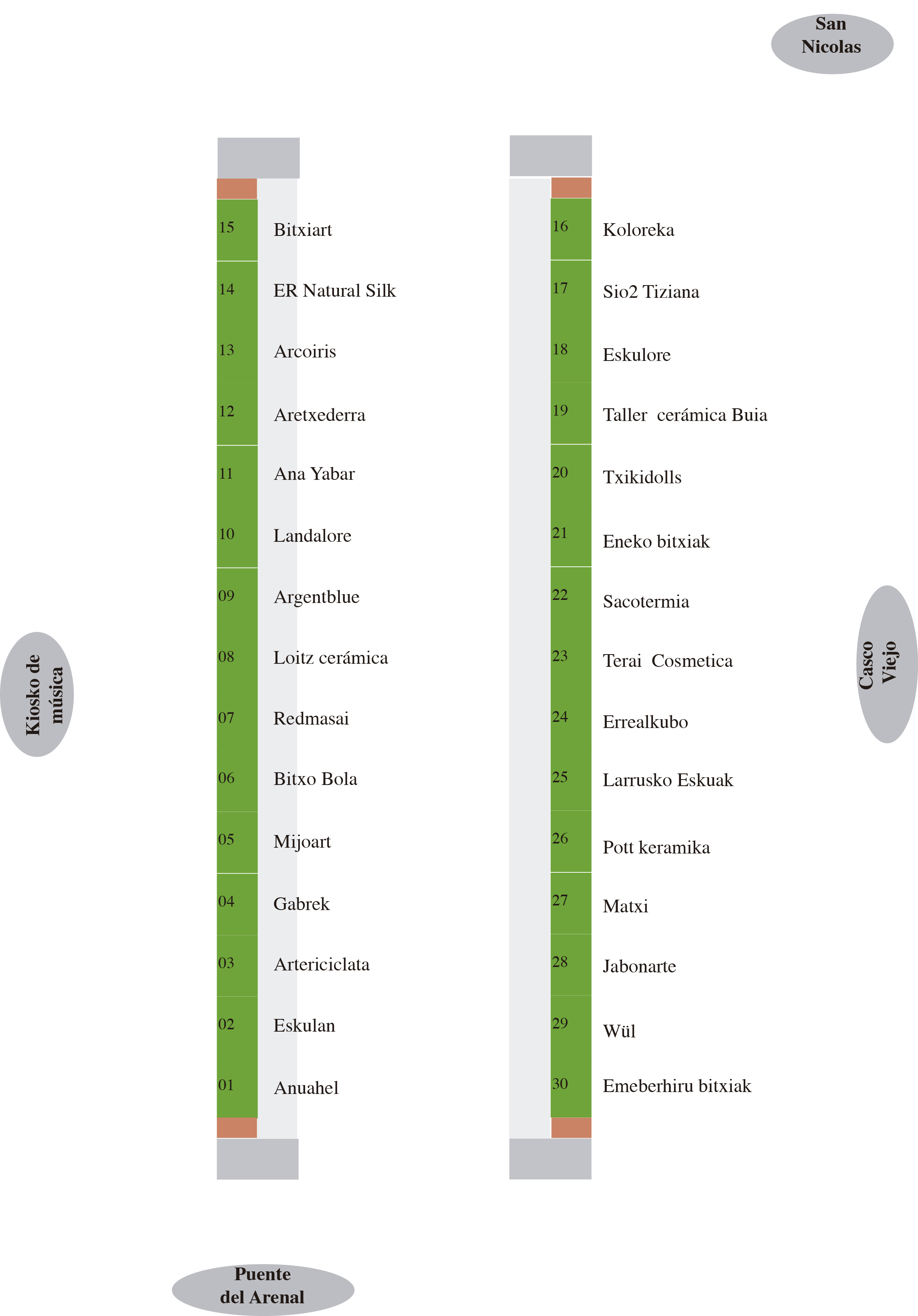 Azoka gunearen planoa, parte hartzaileen kokapena.
