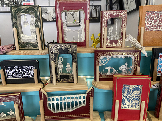 beiraz egindako imitaziozko bitxi-denda batekin.